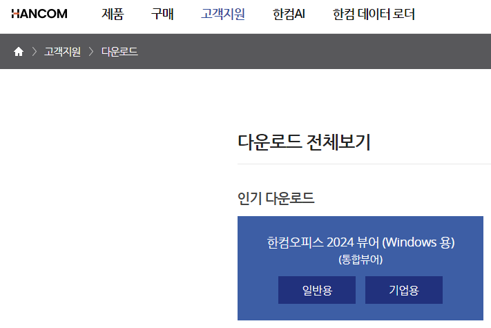 고객지원 > 다운로드 에 가면 통합뷰어 일반용(개인), 기업용 을 따로 운영하고 있습니다.